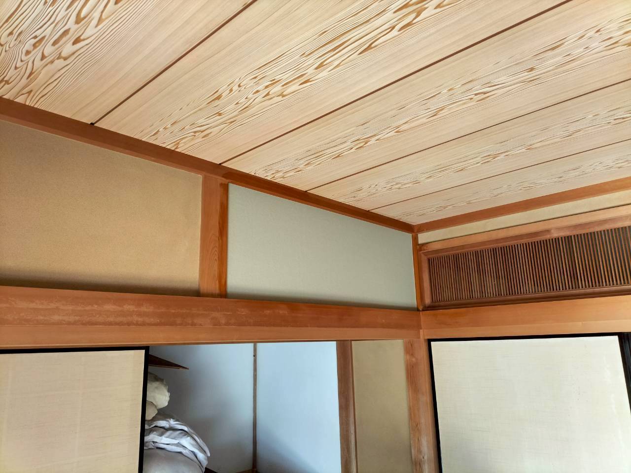 この後クロスを貼るのですが、ベニヤ面でない所は早期にクロスが剥がれる恐れがある為、この上から更に5.5㎜のベニヤを増し打ちしてもらいました!