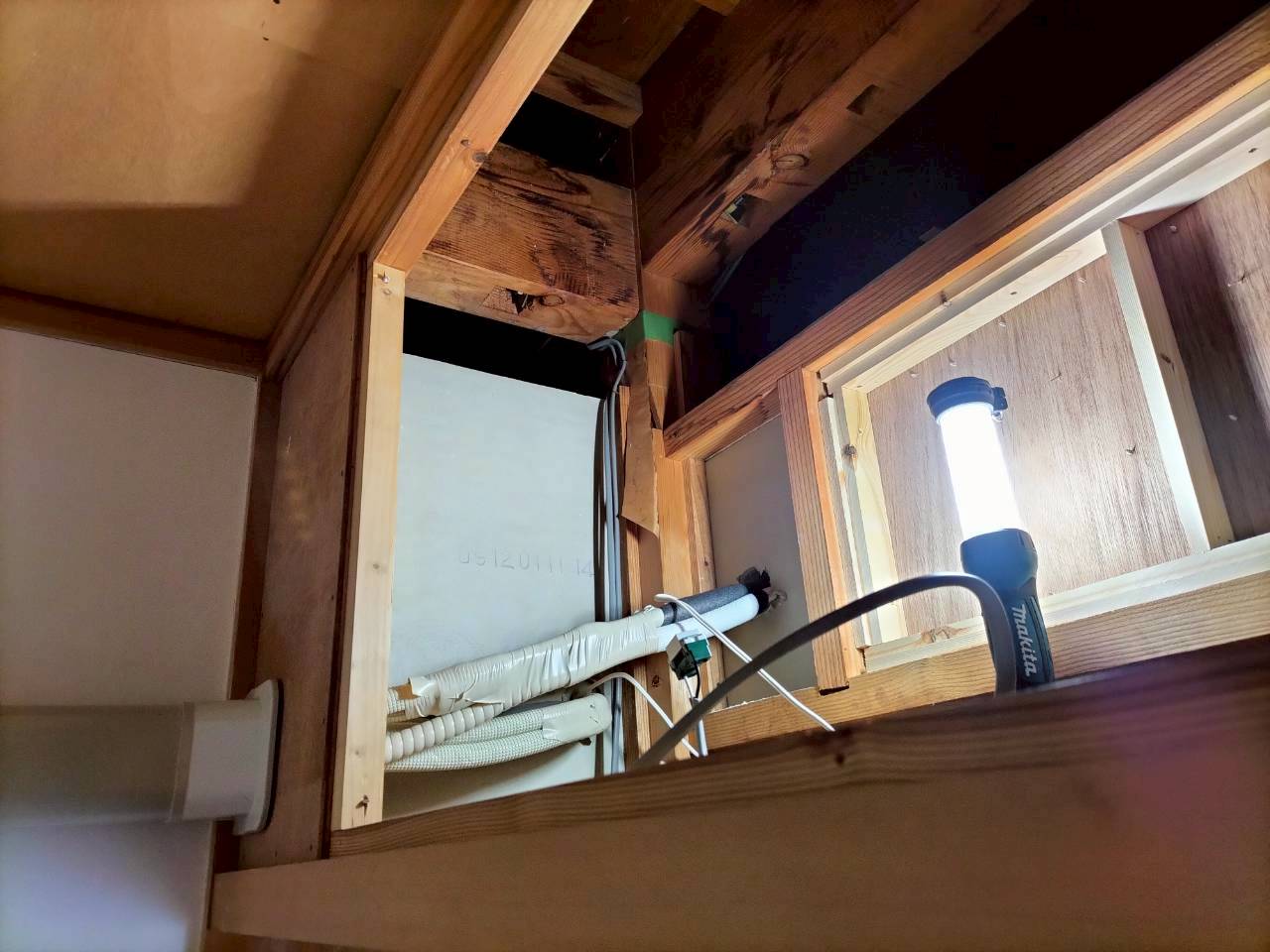 配管は壁埋込だった所のスペースを活用。
